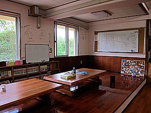 ログ付はこちらで行います。グループ別にわかれて行います。図鑑も豊富に取り揃えていますので使って下さい。温かいコーヒーや紅茶、冷たい飲み物もご用意していますので自由にお飲み下さい。自販機にはオリオンビールもあります。