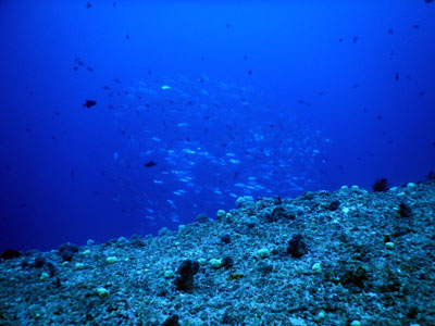 ドロップ沿いには壁一面にカスミチョウチョウウオの大群!!これはこれは迫力満点です♪