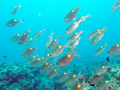 水面付近を群れていたノコギリダイやロクセンスズメダイは