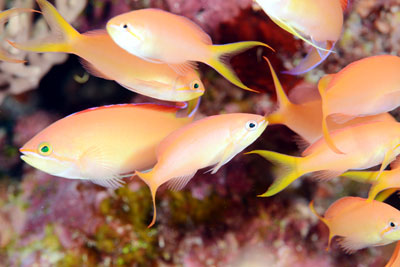 スミレナガハナダイのオスとメスをじっくり観察しました。オスが人気ですが、メスもすごくキレイな体色ですよ~。