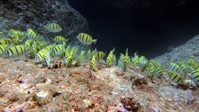 ここでもノコギリダイとアカヒメジの大群に会うことができました♪