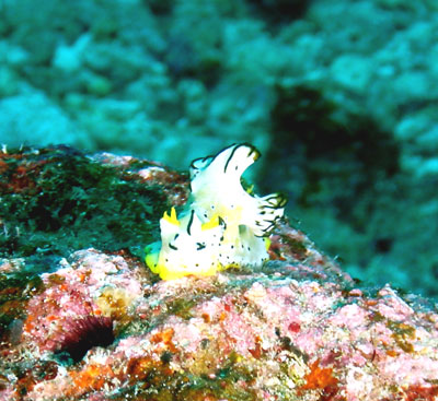 ウミウシもユキヤマウミウシやベニゴマリュウグウウミウシなど、25℃という水温でも