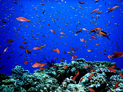 アカネハナゴイの群れを初めとし、キンギョハナダイやナンヨウハギなど、