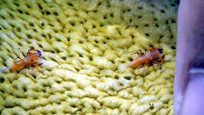 アデヤカバイカナマコの裏には今日もウミウシカクレエビを発見しました。