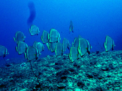 中にはアカククリ、ツバメウオなどがたくさん群れていて迫力満点☆