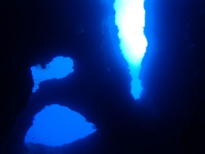 「スネークホール」は透明度が良かったため、入り口を振り返った時の青の光がキレイでした~
