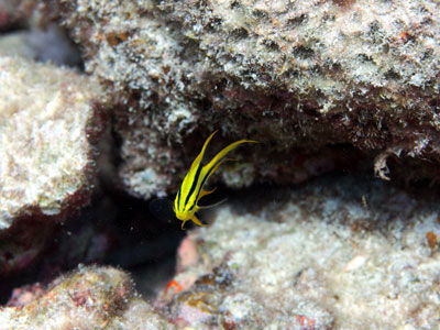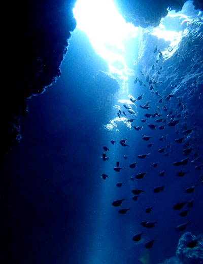 洞窟内はスミツキアトヒキテンジクダイがたくさん群れていました~