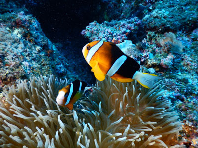 水中ではクマノミを見たり、手で触れるほどの距離でフィッシュウォッチングを満喫。