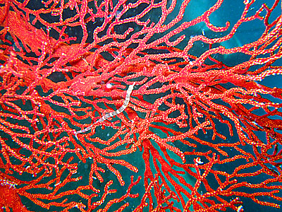 船下では、カミソリウオのペアが仲睦まじく暮らしていました。