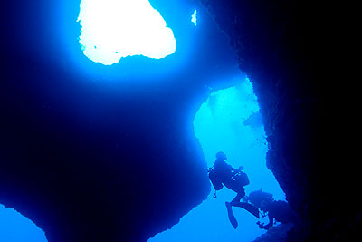 クロスホールの穴の入り口前ではいつもアカヒメジとノコギリダイが群れていますが、