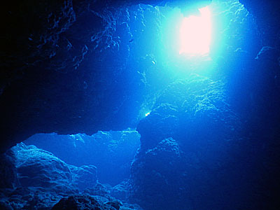 穴から外の海を眺めると綺麗な青色になっていました(´▽`)