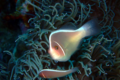 白いイソギンチャクにクマノミ家族がいました!!