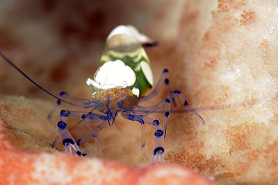 魚たちをクリーニングするナデシコカクレエビもいました!