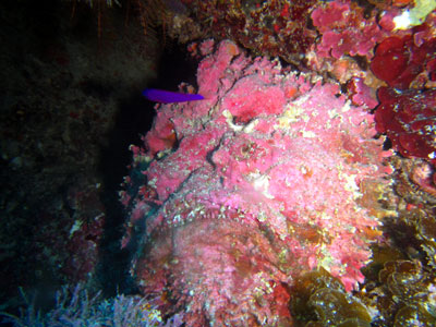 窪みにはピカピカ光るウコンハネガイもいましたよ~。大きなハナミノカサゴもお散歩していました。