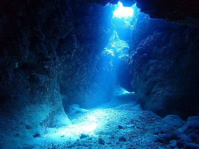 クロスホールの上からは、ダイバーの息が、エアーカーテンを作ってくれます(*^^*)