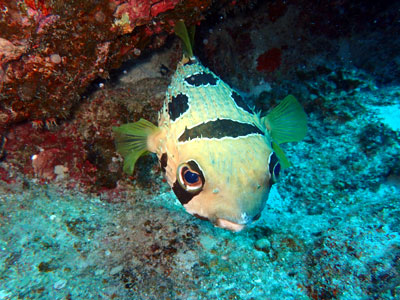 帰りにはサンゴの上にヘコアユがあっちにもこっちにも!!ヒトヅラハリセンボンがサンゴの隙間から顔を出して、