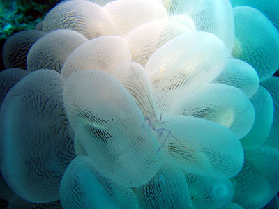 大きなチョウチョウコショウダイやヒレグロコショウダイ、砂地にはヒメダテハゼとコシジロテッポウエビが共生