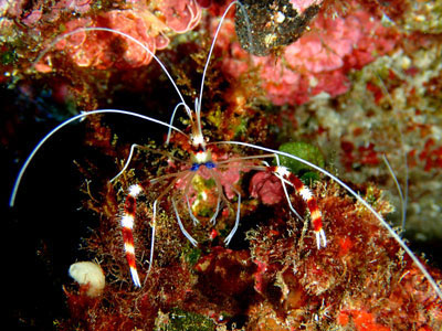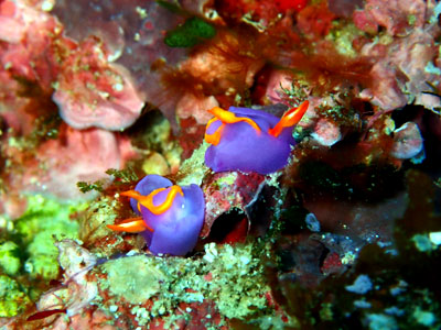 そして、壁には白い触角を伸ばしたゴシキエビの子供や初めてお目にかかるウミウシさんも発見!