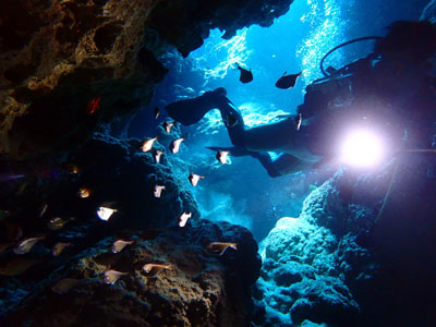 ファンダイビングチームの私は1本目の中の島ホールで縦穴洞窟!THE地形を満喫してきました!
