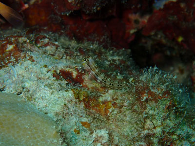 沈船周りの地面では泳ぎ方が可愛いニシキオオメワラスボ、ヒレを振っているヒレフリサンカクハゼなどが見られました!