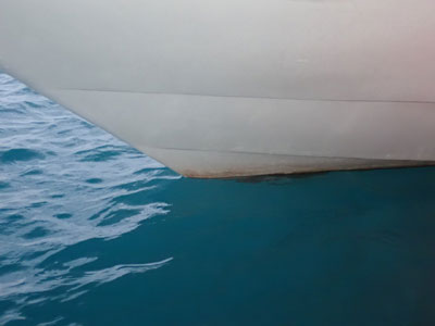 キンチャクガニやウコンハネガイ、ボート下に群れるノコギリダイの中に1匹だけ