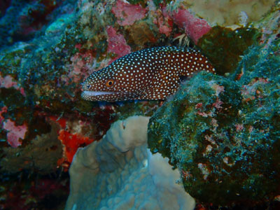 チャネルでは、スミレの花と同じ色、スミレヤッコがクレバスの中にちらほらいました。