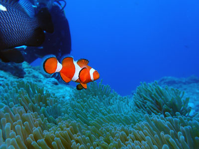 水中カメラを持参していらっしゃったのでパパはカメラでクマノミを一生懸命撮影し、