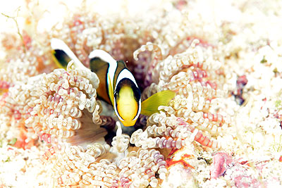 カクレクマノミが抱卵中。今度潜った時には産卵したタマゴを育てている頃でしょうか?楽しみです☆