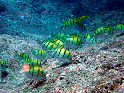 ナンヨウハギの幼魚やデバスズメダイ、ミスジリュウキュウスズメダイの幼魚などがとっても可愛いかったです!