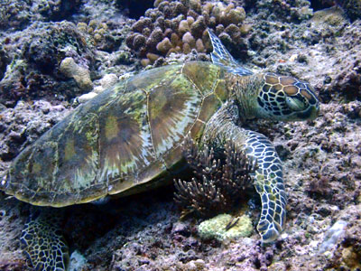 アオウミガメ、20匹以上に出会いました。彼らにもお気に入りの場所があるようで