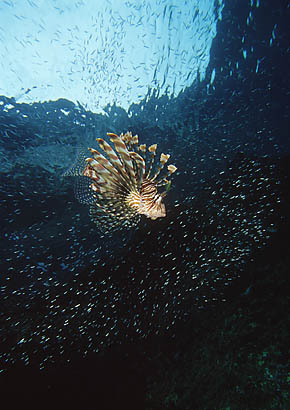 キビナゴを狙って中層に浮かぶミノカサゴ。